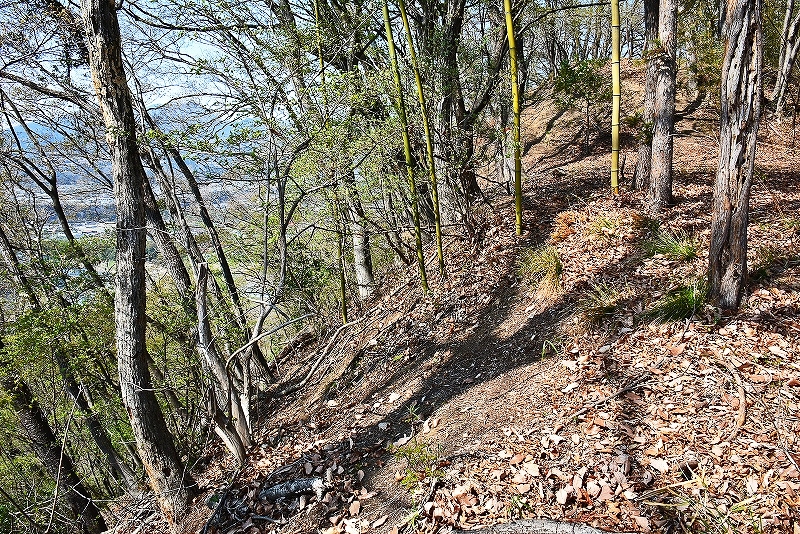 事前に得ていた縄張図などからは余り想像ができなかったのだが、主郭、二の郭北西部は棚下砦の西端部ほどではないにしても、かなりの急斜面であり断崖といっても良いものがあるように思われた。