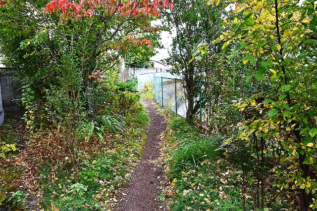 幅員1mにも満たないような小道であるのだが、通学時間帯でもあるらしく高校生と思われる生徒が自転車で疾走していた。