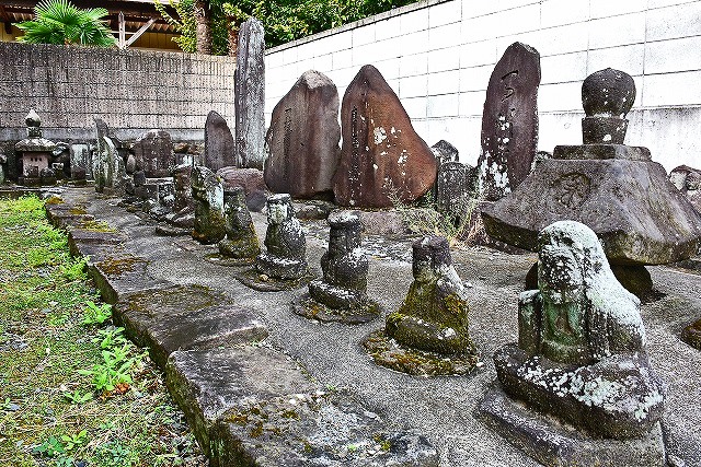 近世における民間信仰である「十王信仰石仏群」のほか、庚申塔、五輪塔残欠などが多数纏められて保管されていた。