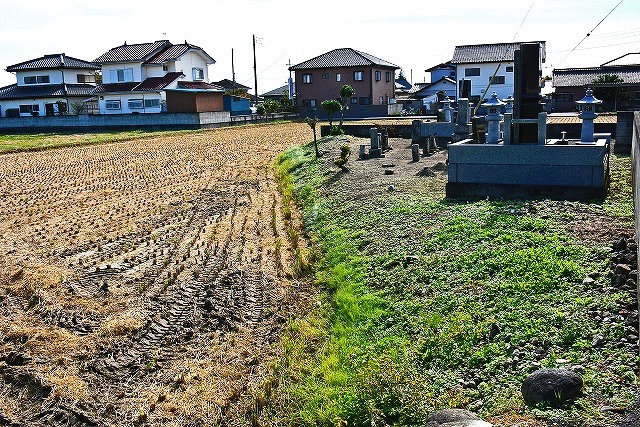 そのなかで、かつての城域に隣接していた古い共同墓地付近に、水田との比高差を感じる斜面が残されており、かつての景観のほんの一部を髣髴とさせているように思えたのである。