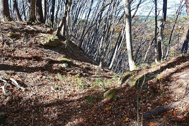 やはり事前の情報通り、主郭付近はすでに落葉の季節ではあったのだがヤブが酷かった。
