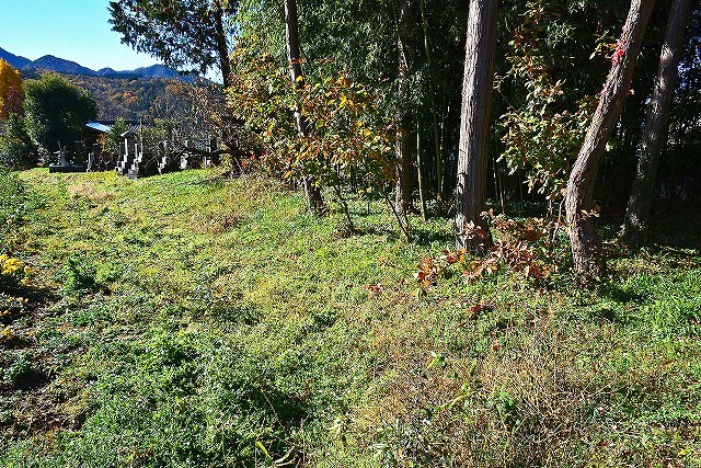 腰郭と思われる部分には地元の墓地が散在しており、見学にはあくまでも失礼の無いように心掛けねばならない。