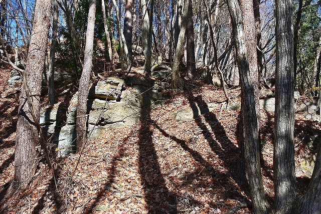 この集落の標高は610m以上はあるようで、昨日の小雪の形跡が城跡北東部の日陰に残存していた。