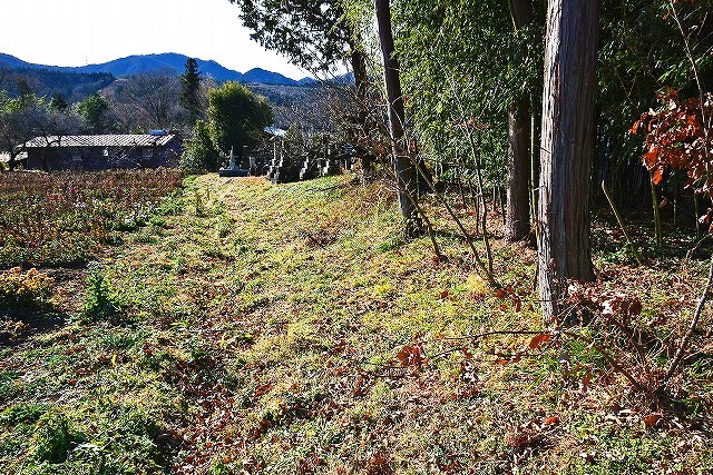総じて遺構は事実上消滅に近いものがあるのだが、北側の堀跡及び土塁の痕跡と目される畑の段差等が確認できる。
