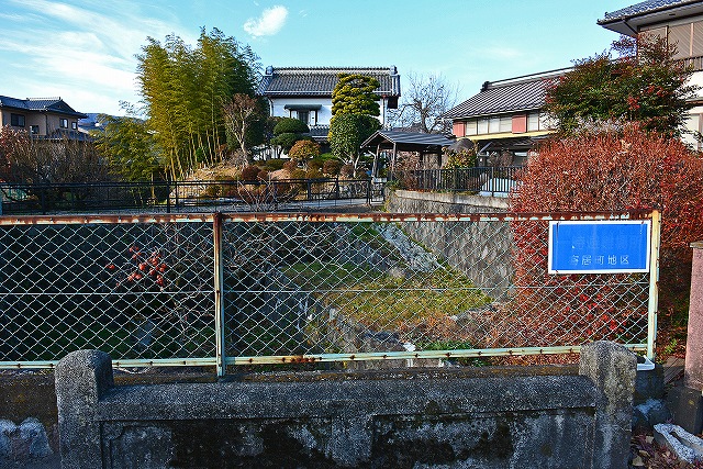 ただし現在城跡らしい遺構は南西側の民家敷地内となるのだが、僅かに南西方向の参道脇からチラリと眺めるのみである。