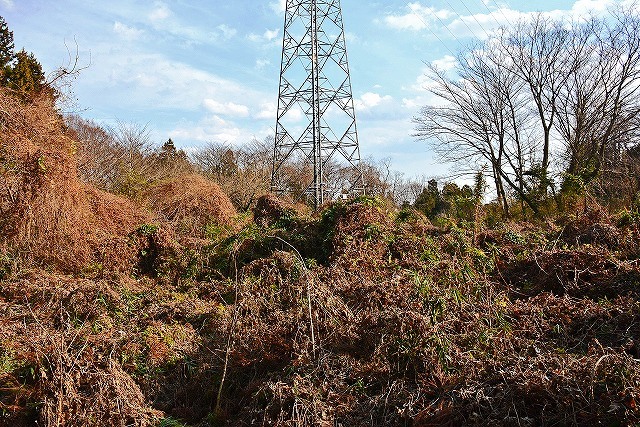 鉄塔の周辺は草木も少ないのだが、その先の西側には「鐙山の砦」にも似た鬱蒼とした山林が目に入る。