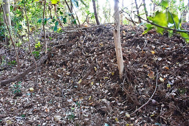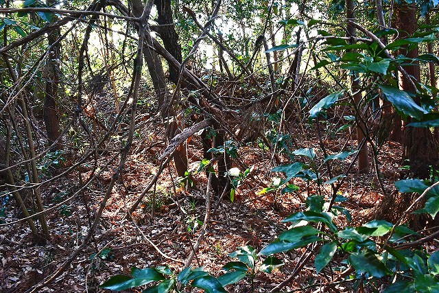 尤も、あくまでも遺構の北側部分がそうなのであって、日当たりのよい疎林部分については、当然のことながら藪が濃い状況であった。