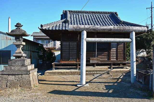 上沖町の旧村社である神明宮乃至大国主神社を参拝し、境内北側の出入り口を経由して徒歩にて北西約100mに位置する小神明の寄居へと向かった。