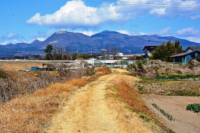 さらに北へと歩みを進めていくと右手方向に折れてゆく小道があった。どうやらこの小道が城館跡の北限に相当するものと思われたことから、そのまま上武鳥取へと向かう公道を横断して、城館跡の東側へと向かうこととした。