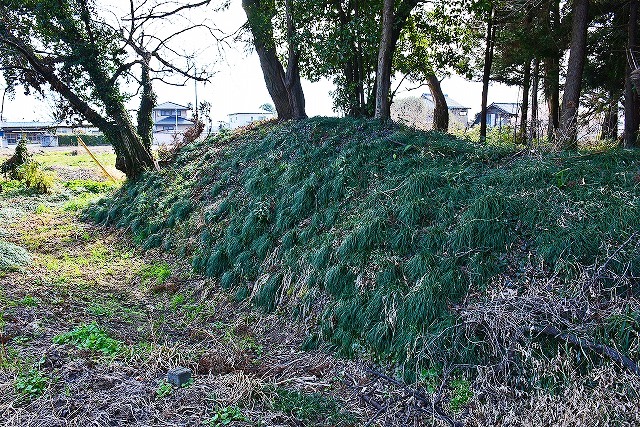 「前橋市史」の記述によれば、その当時は比高差5メートルから7メートルを測ったという旨が記されているが、現在では3メートルから1メートルあるかないかというように削平を受けているようであり、往時の面影は微塵もないように感じた。