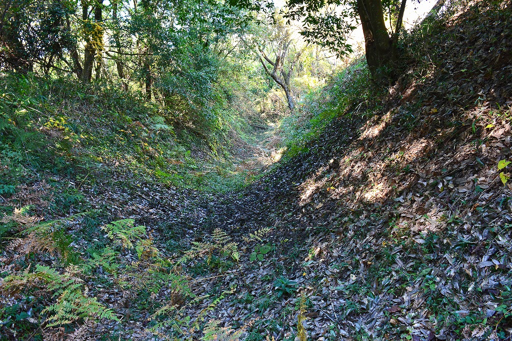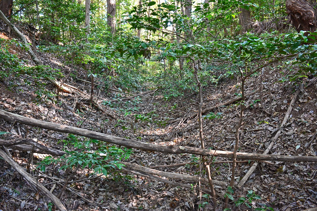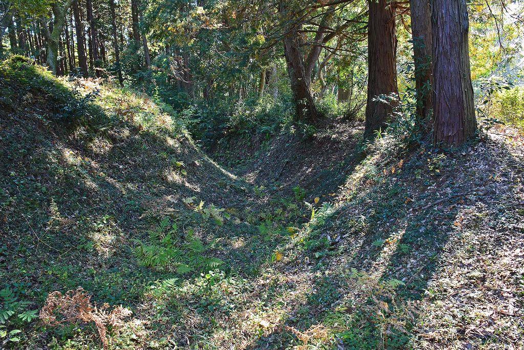 空堀の堀幅は数メートル程ではあるものの、北側部分ではその深さは最大で5mを超えるような個所も散見され、かつ切岸の角度も鋭角であり一重とはいうもののその防御意思の強さが感じられる。