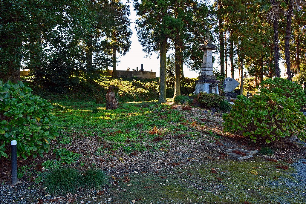 同寺境内の西側はこのような人工的な崖線地形を呈しているのだが、同様に環濠跡との関連は不明である。