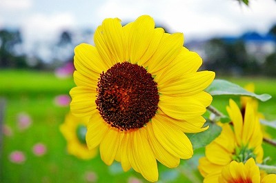 水田の傍らに咲いていた向日葵