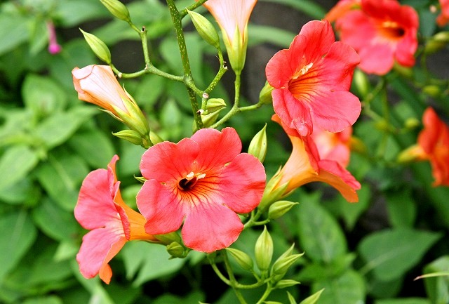 昨日と同じく地鶏..ではなく、ムクゲと同様に上里の吉祥院東側に咲いていたノウゼンカズラ。