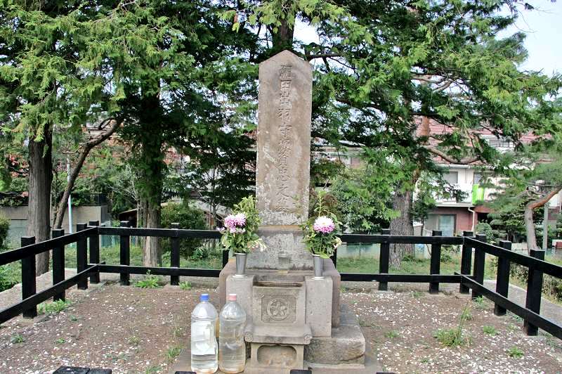 つぎに主郭と推定されている公園に赴き、城主とされる潮田氏の墓石(昭和初期に改修再建されたもの)を見学。