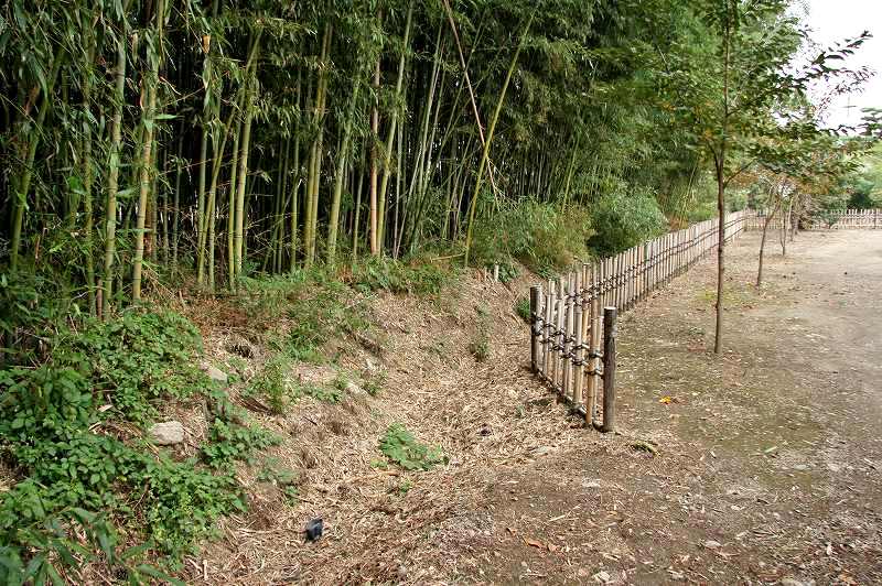 館址裏面の碑文に土塁遺構の記述が刻まれているものの、寺院としての後世の構堀、あるいは畑の根切りという要素も否定できないような印象が。