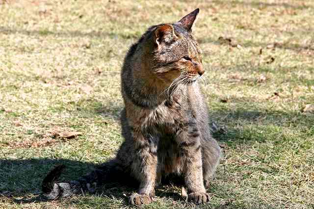 茶臼山古墳への園内の道沿いの芝生に気持ちよさそうに日光浴の最中のネコさん発見。