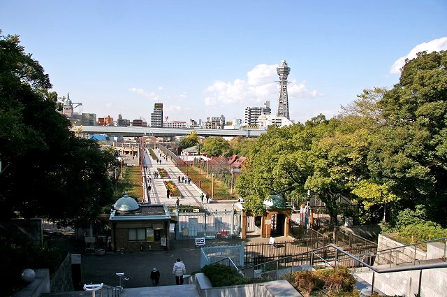 帰り際の美術館前からは、往路には全く気付かなかった大阪名物の通天閣が間近に見えたのでありました。