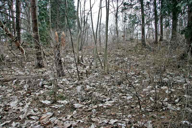 城跡らしき地形は林道から南へ180mほど進んだあたりからようやく出現。