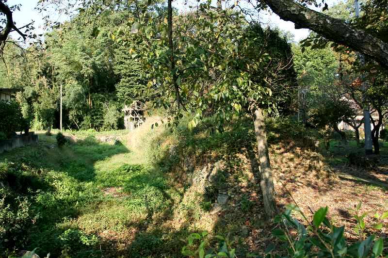 明確な遺構は先ず旧家西辺の延長70mほどの土塁・堀跡で、土塁は堀跡を挟んで二重土塁の形式を構成。