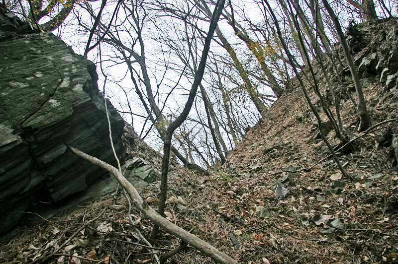 高さ1mほどの段差や立ち入る事が不可能な篠竹の藪に郭跡の残影を追い求める。