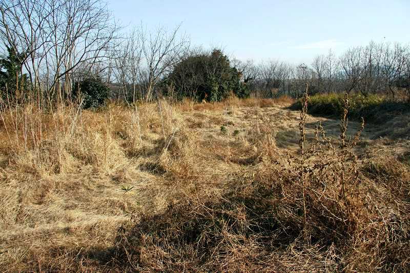 僅かに残る畑の窪みに堀跡の名残を求め。