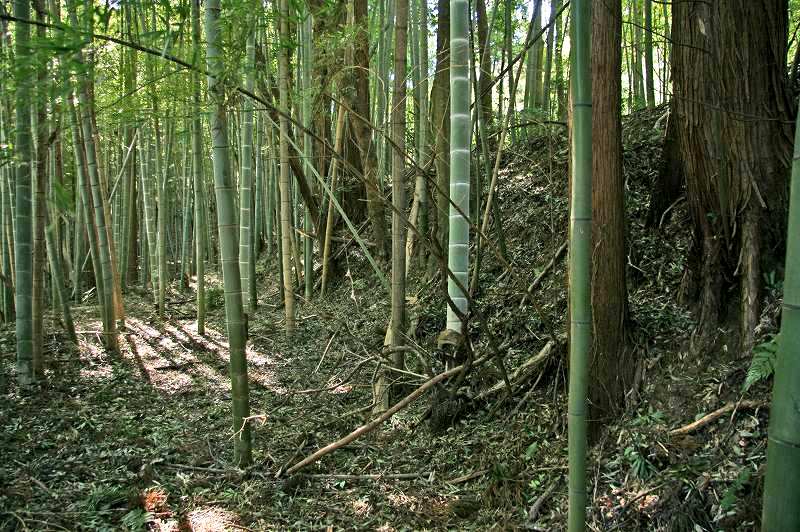 見せ場ともいうべき墓地南側の大規模な堀切も伐採された大量の孟宗竹に半ば埋まっているという印象も。