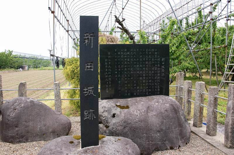 とはいえサクランボ畑の中に御影石製の城跡標柱のみ。