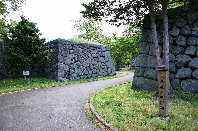 石垣による枡型は西門が人通りも少なく最も撮影が容易。