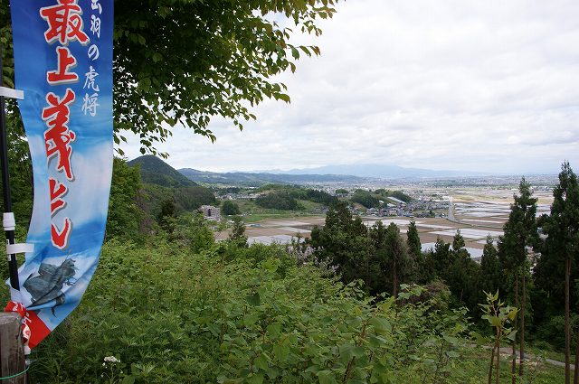 比高差80mの割には眺望に優れ、直江兼続の本陣が置かれた西側の菅沢山も一望。