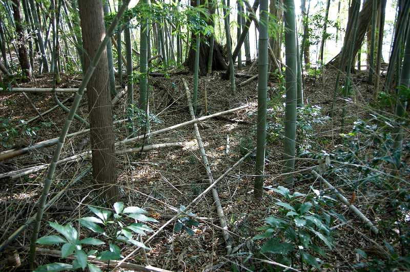 このほかには竹林の中にひっそりと佇む南北方向に長さにして40mほどの土塁のみ。
