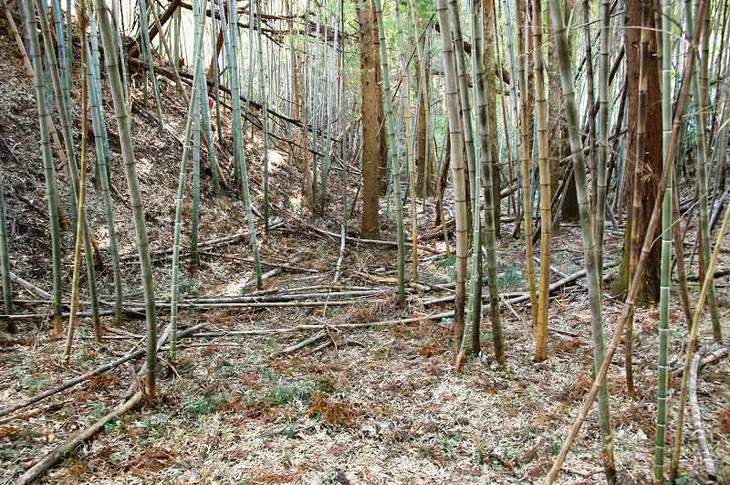 ある程度の篠竹の藪を想定していましたが、南端部の上段腰郭が一面の枯草に覆われていることを除いて