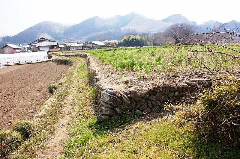よく見ると南端部の宅地側にも土塁(石塁)遺構が現存。
